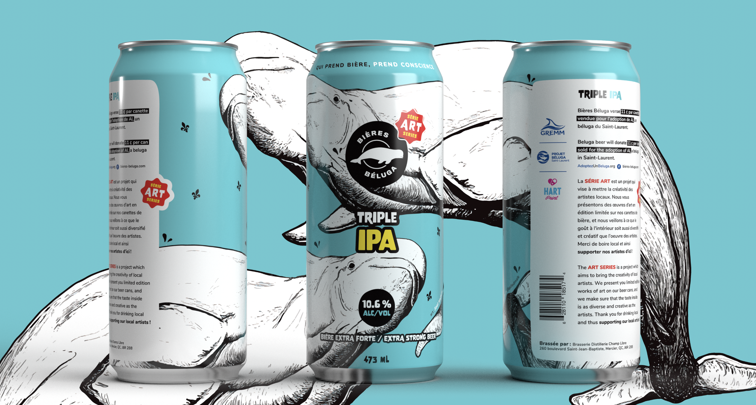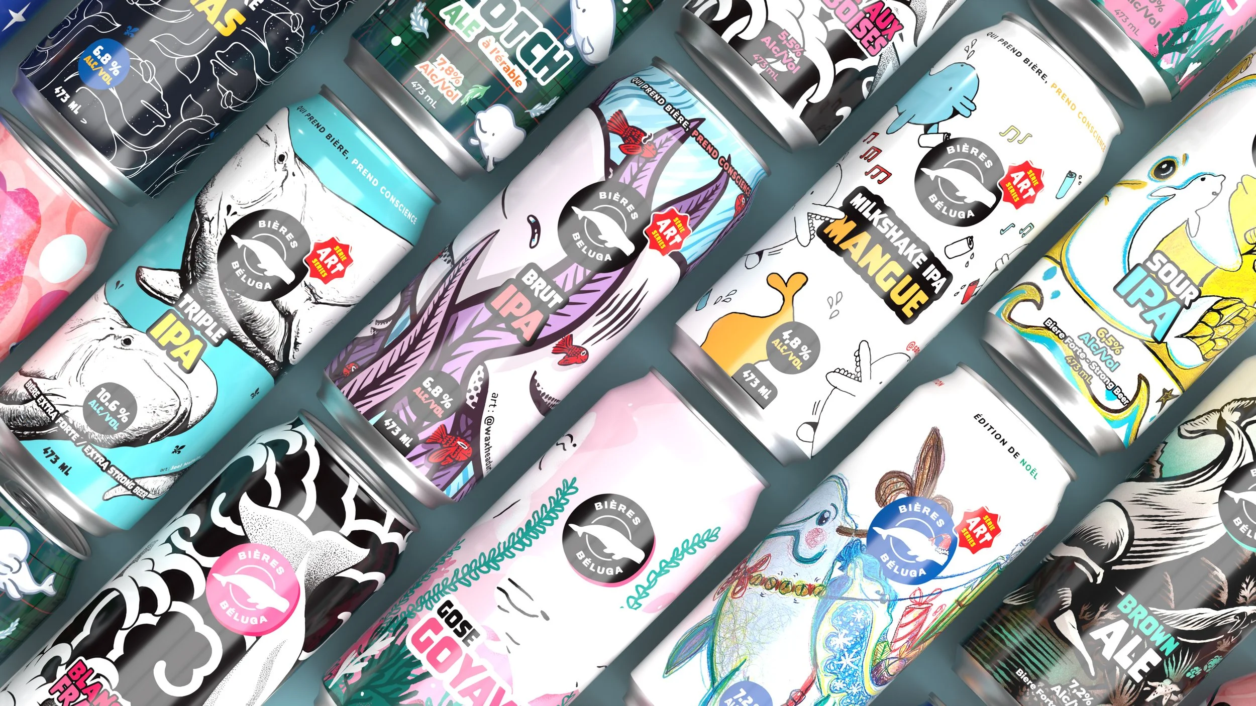 A dozen talented artists from the province of Quebec teamed up with Les bières Béluga and collaborator breweries to carry out the project. Hart Print was there to bring each can to life, thanks to our cutting-edge digital technology that seamlessly and accurately prints on digital cans, all the way up to the neck. The result? Each blank can became a canvas to them.